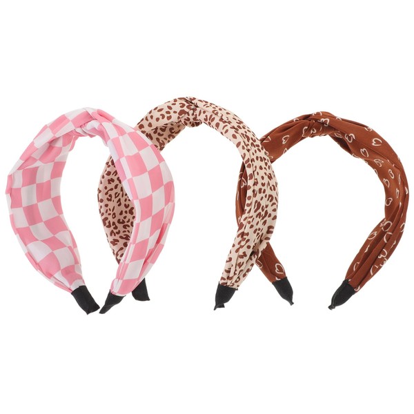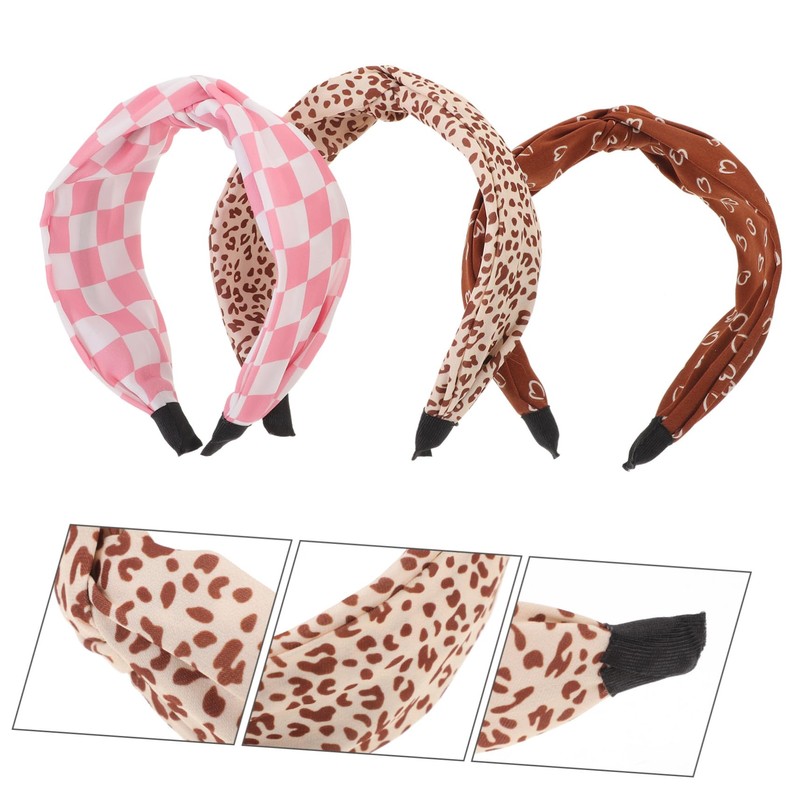 Healvian 3pcs Knotted Fabric Headbands for Women Stylish Wide Hair Bands Leopard Light Checkered and Patterns Comfortable Accessories for Everyday Wear and Special Events