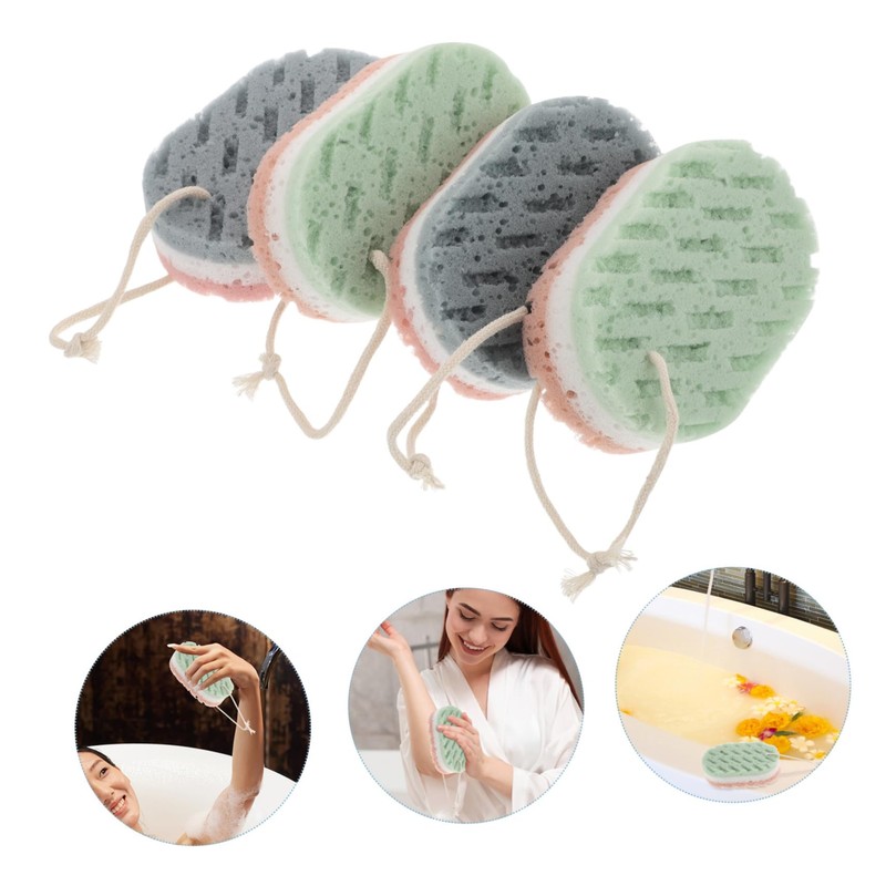 Healvian 4pcs Exfoliating Bath Sponge for Gentle Dead Skin Removal Soft and Shower Wash Cloth for Men and Women for and Relaxation
