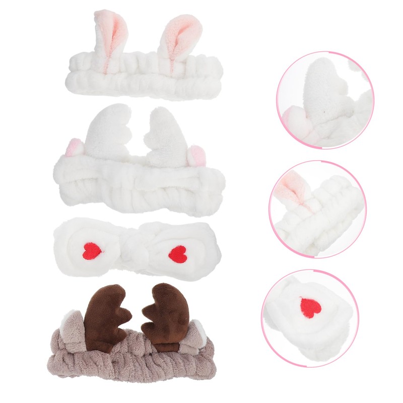 Healvian 4pcs Makeup Headband Hair Bands for Spa Face Wash and Makeup Application Comfortable Absorbent and Stylish Design Heart Antlers Antlers and Ears