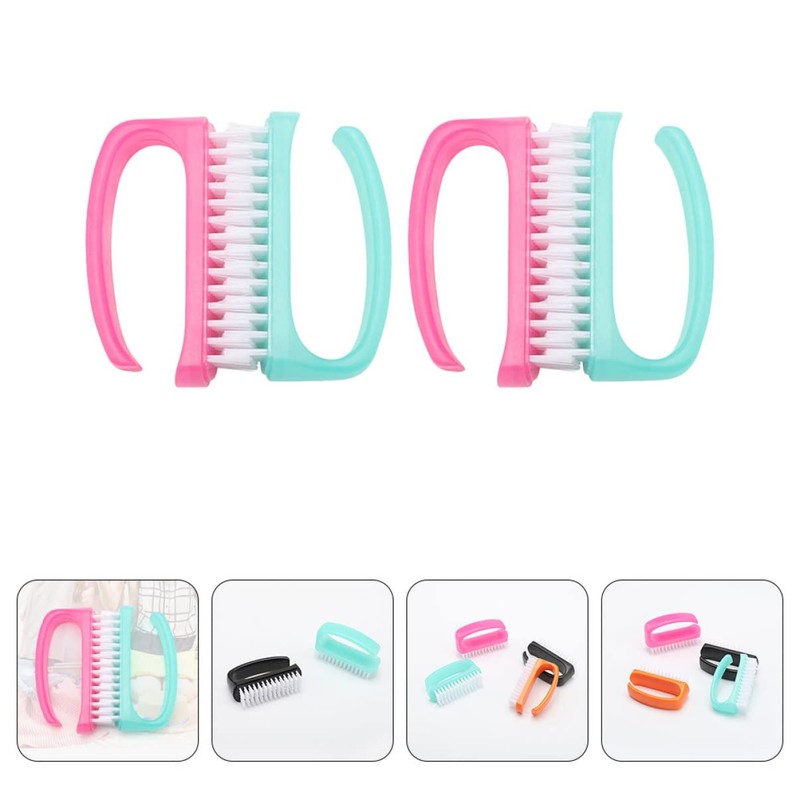 Healvian 4pcs Nail Cleaning Brush Wear-resistant Fingernail Scrub Tools Bent Handle Design for Easy Storage for Manicure Dust Removal and Nail Art Cleaning