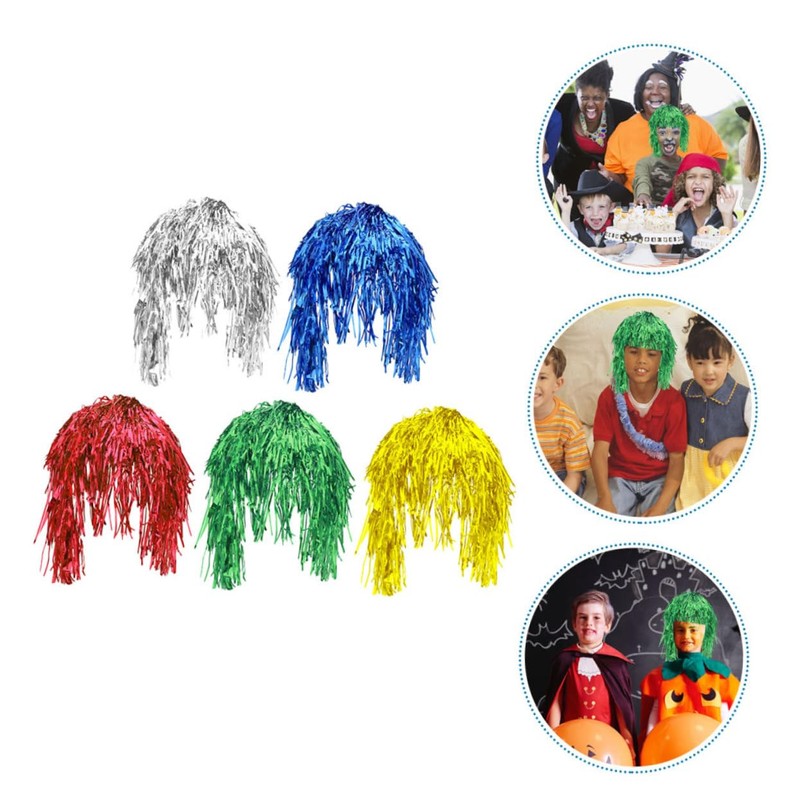 Healvian 5pcs Metallic Wigs for Women and Girls Shiny Foil Tinsel Wigs for Holiday Parties Costume Events and Cosplay Lightweight Reusable and Glamorous Hair Accessories