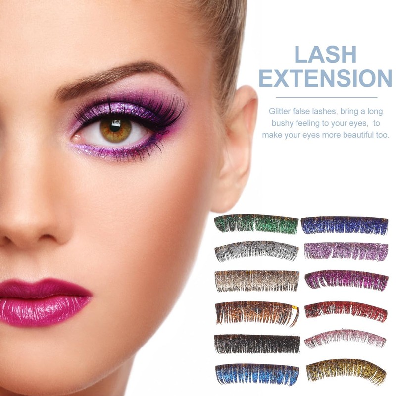 Healvian 6 Paar künstliche Wimpern mit Glitter Exstension Bunte Wimpern mit Glitzer Künstliche Wimpern für DIY Make-up Augen Make-up Zubehör Perfekt für Party und besondere Anlässe