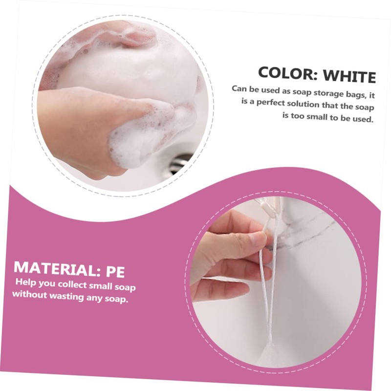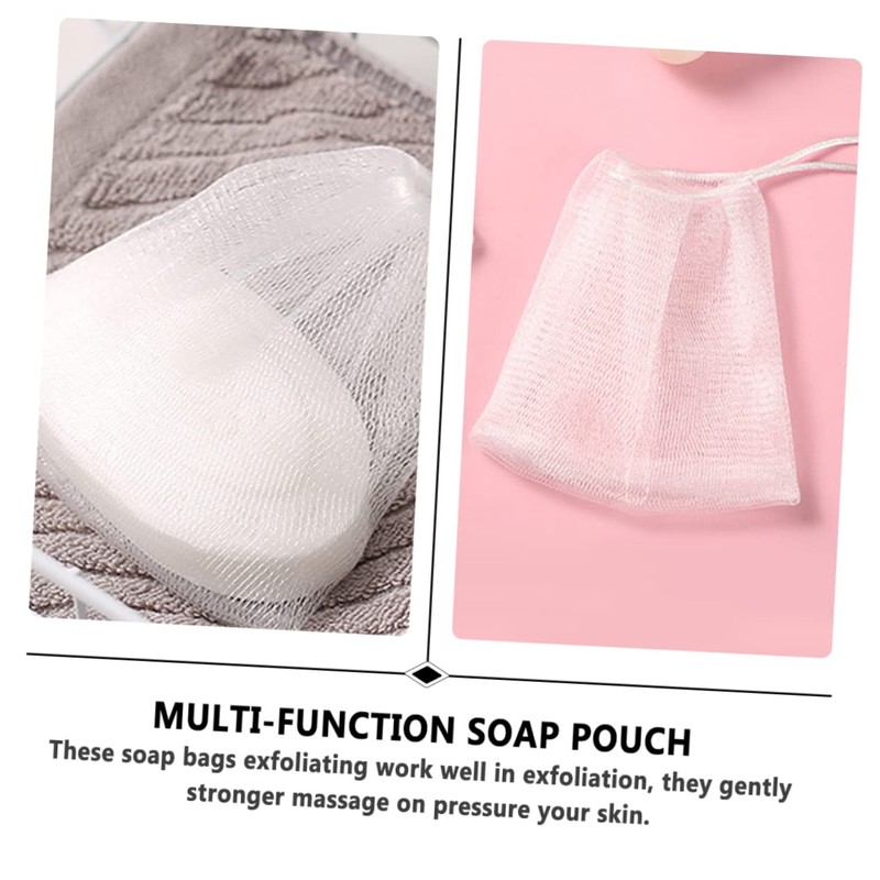 Multi-function Soap Net The soap bag can save your soap with highly utilization ratio.Soap Pouch These soap bags exfoliating work exfoliation, they gently stronger massage on pressure your skin.Drawstring Soap Bag Drawstring design makes it easy and convenient to close and open.Mesh Bag Made of for durable and use