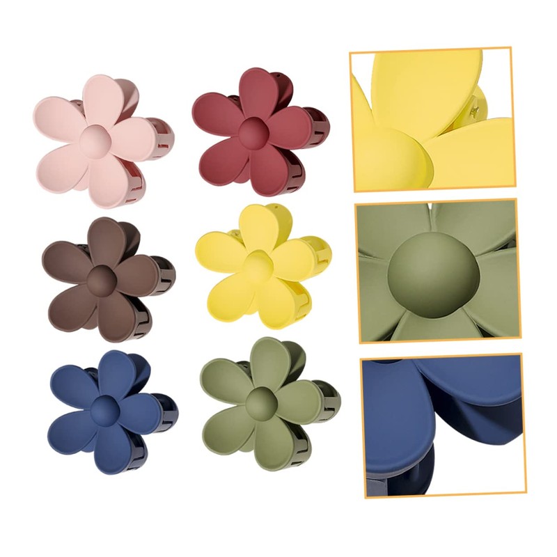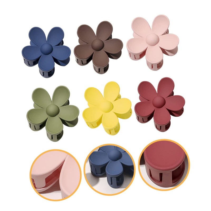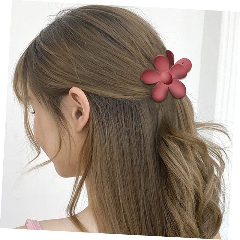 Healvian 6pcs Large Flower Ponytail Clip Non- Hair Holder for Thick Hair Matte Soft Deep Wine Light