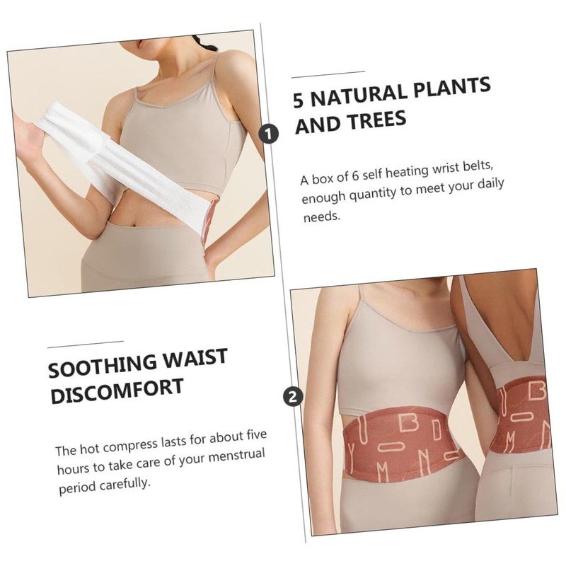Healvian 6pcs Self-heating Waist Belts for Menstruation Ginger Heating Plasters Elastic Comfortable Non-woven Constant Temperature for up to Hours for Cramps Relief