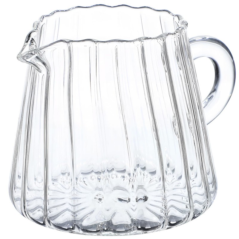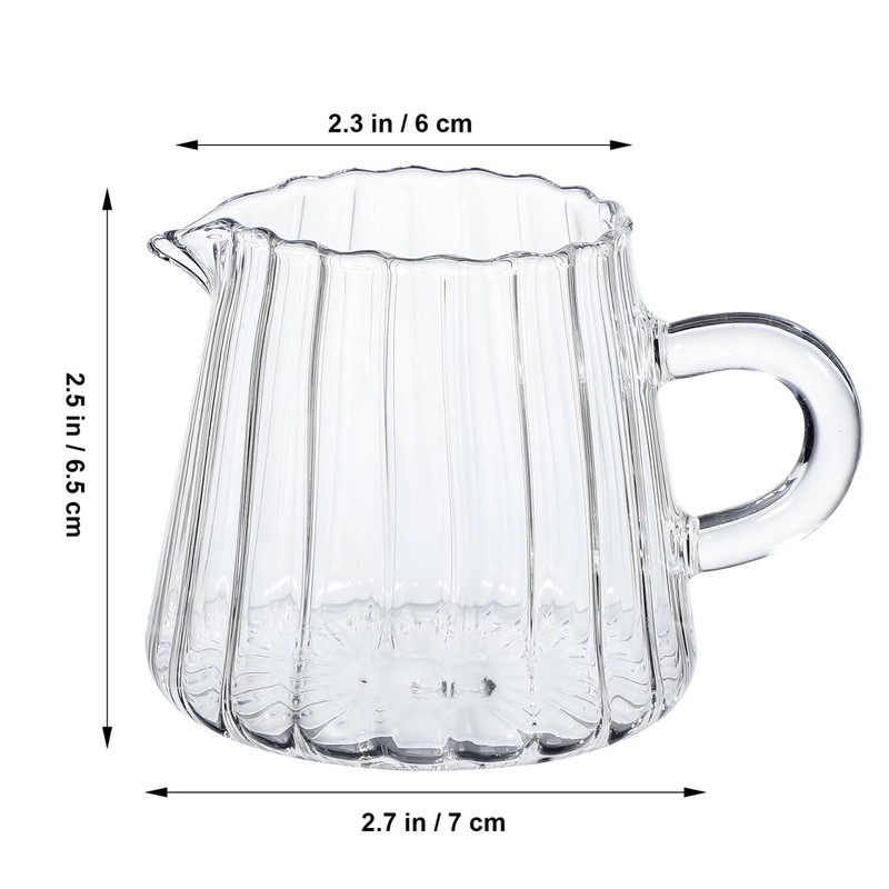 - Fine Craftsmanship:-- The exterior of our glass creamer pitcher is smooth and polished, adding to its overall aesthetic appeal. The elegant wave-shaped crystal glass creamer coffee pitcher is great for serving milk/cream/salad saucer/hot maple syrup/drawn butter. The creative embossed stripe clear crystal glass creamer pitcher is a beautiful addition to any kitchen