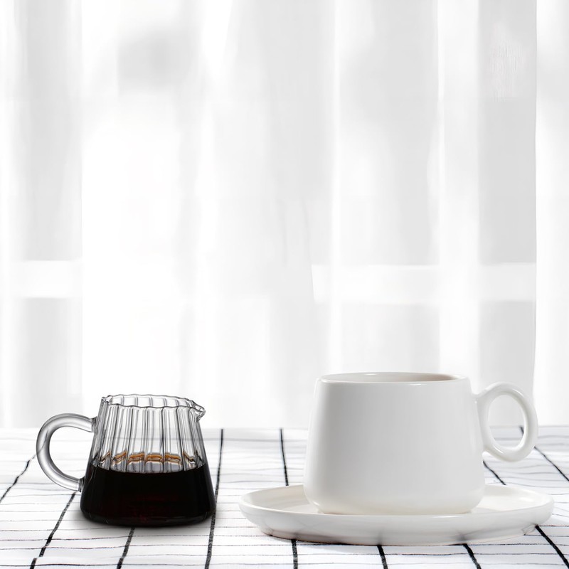 the cream pitcher is made of quality glass, with firm construction and smooth surface, bringing a comfortable touching feeling, easy to clean, serving you for a long time