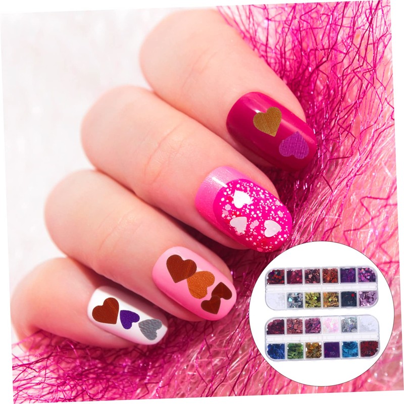 Healvian Heart Shaped Manicure Sequins Nail Art Supplies for DIY Decor Ultra-Thin Glittering Nail Paillettes for Weddings Parties and Personal Use