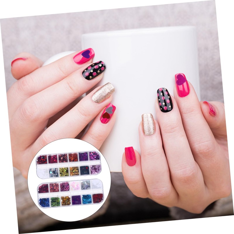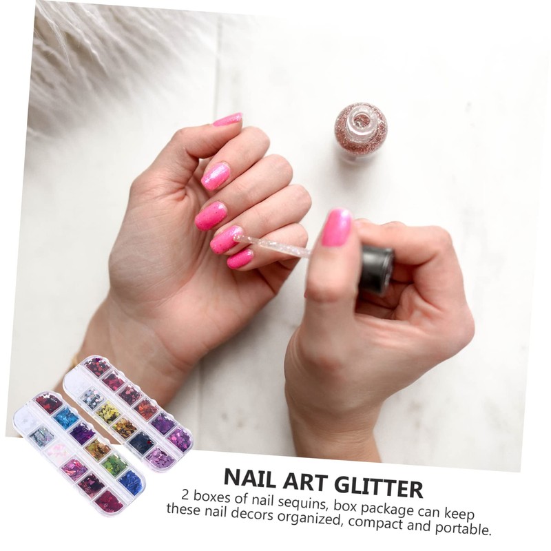 - 2 boxes of nail sequins, box package can keep these nail decors organized, compact and portable manicure sequins.