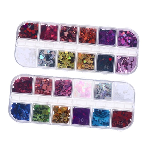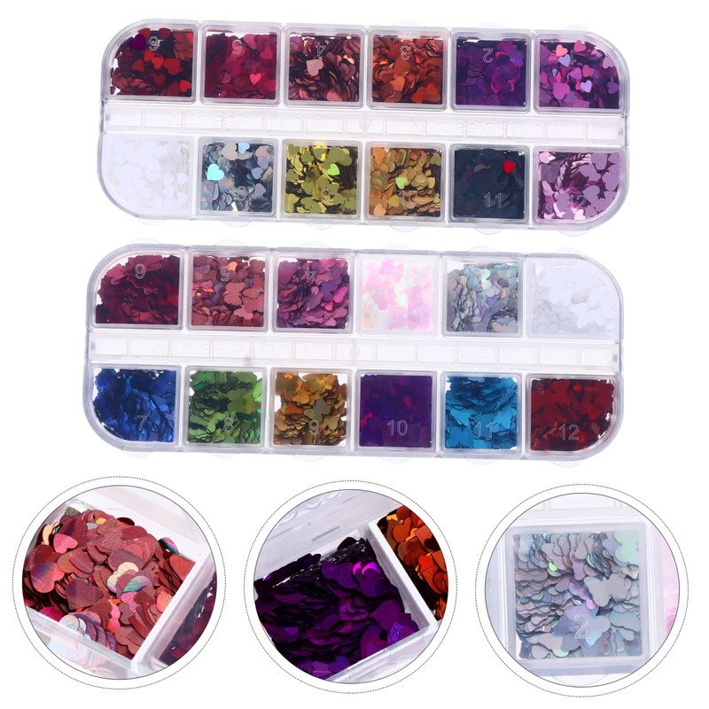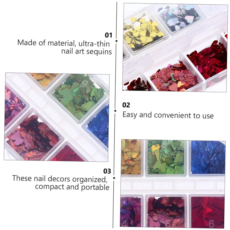 - Heart glitter for nails-- 2 boxes of nail sequins, box package can keep these nail decors organized, compact and portable.