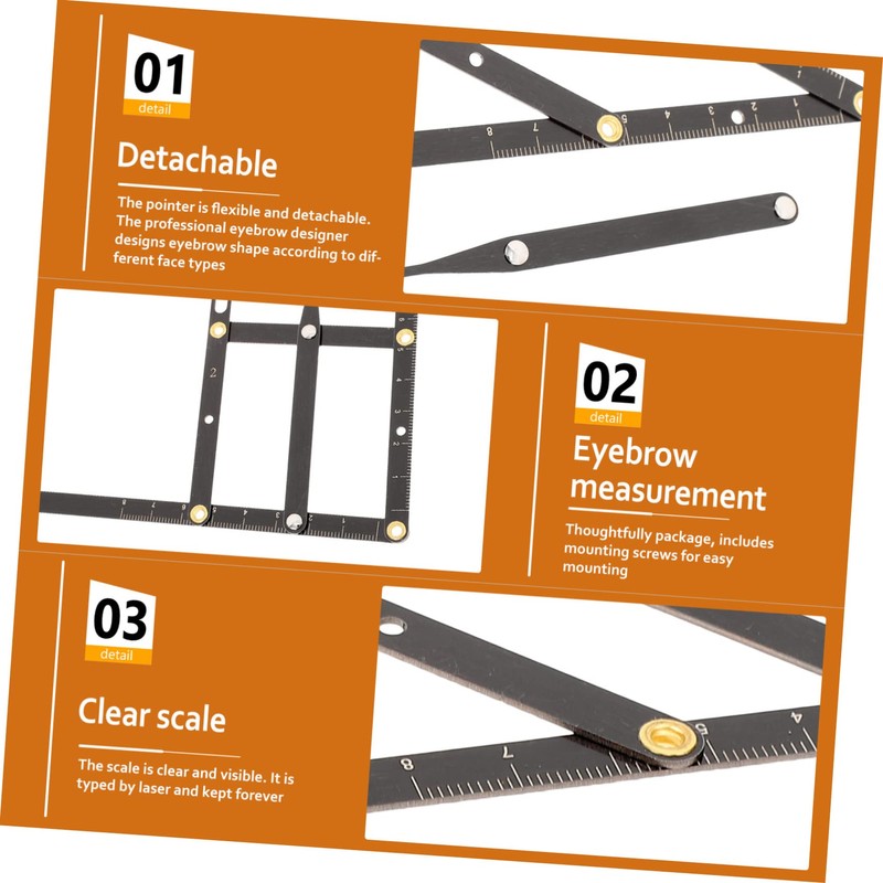 eyebrow measuring ruler This is eyebrow measuring ruler, which is made of stainless steel material, can be used for a long term.eyebrow positioning ruler Three-point positioning design featuring a removable divider that can be attached on the left or the right