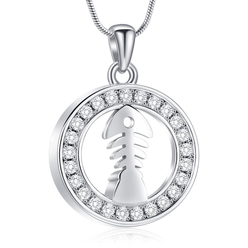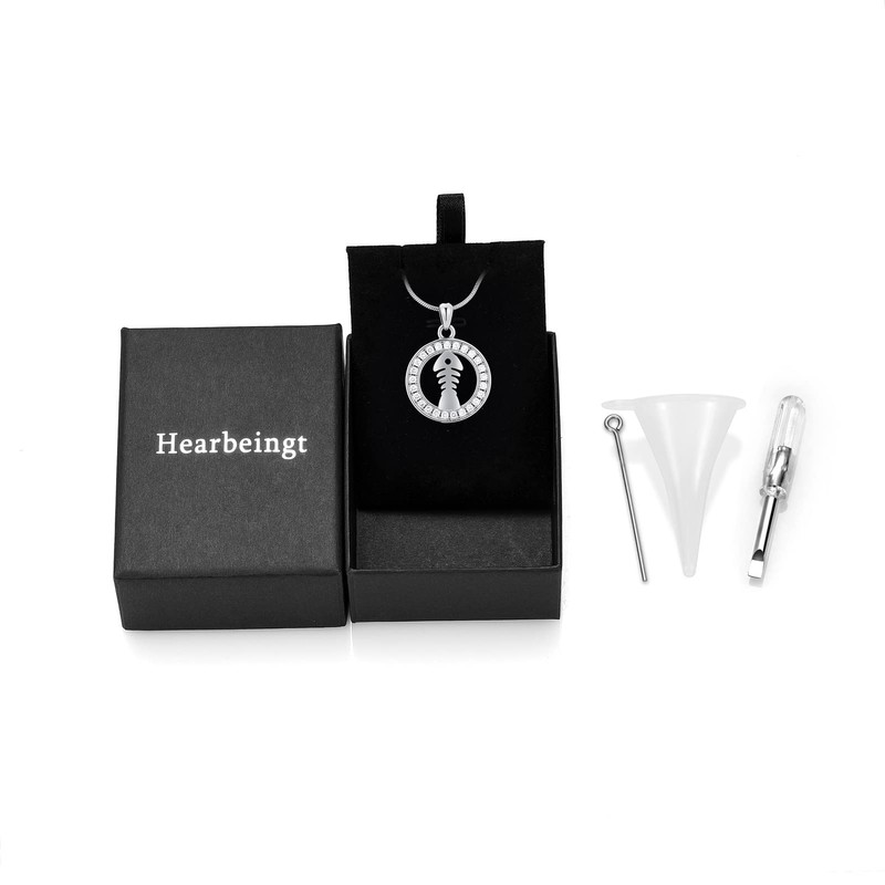 Hearbeingt Fishbone Cremation Jewelry for Ashes, Memorial Urn Necklace for Human Pet Stainless Steel Keepsake Pendant for Men Women(Silver-1)