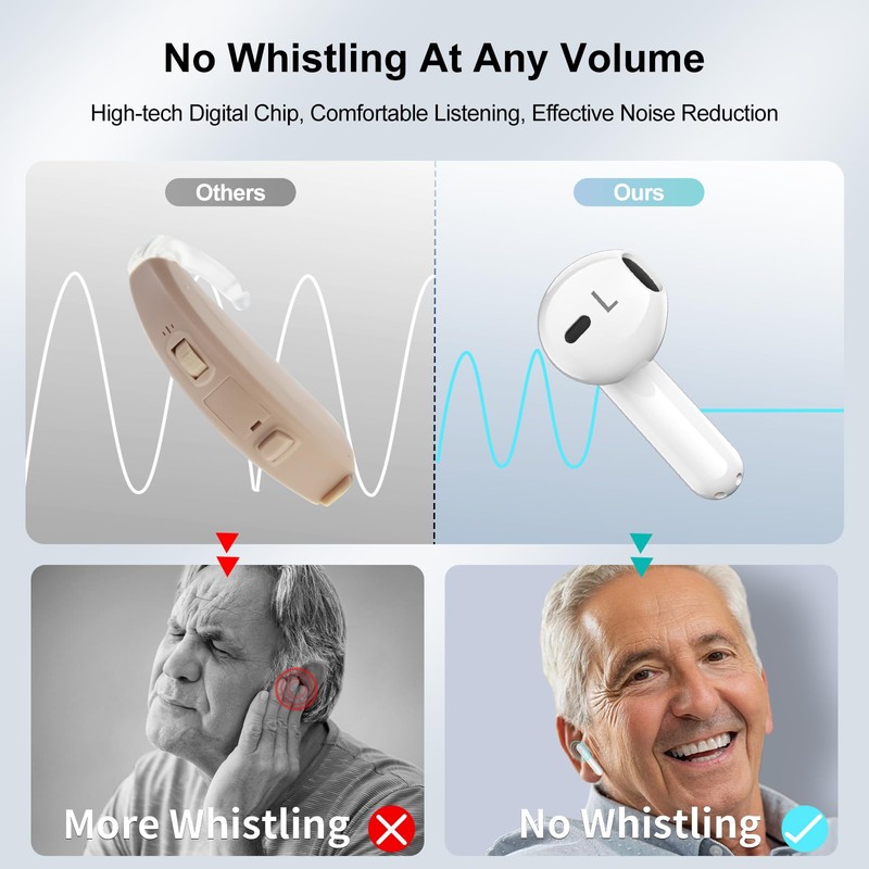 - 【Crystal Clear Sound】Never miss a word again with our hearing aid's 35 dB sound gain, which is higher than most other hearing aids for seniors. Our hearing aids for seniors rechargeable with noise cancelling separate the receiving hole from the speaker to avoid sound return and whistling. And equipped with the latest imported chips, thus obtaining a clearer and more detailed sound.