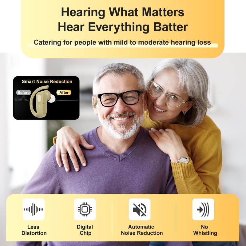 - NOISE CANCELLATION: Our advanced noise reduction technology filters out unwanted background noise, allowing you to focus on the sounds that are important to you. This feature is crucial for improving speech intelligibility and overall listening comfort, especially in noisy environments. Enjoy crystal-clear sound without distractions., enhancing TV and conversation clarity and a more enjoyable listening experience.