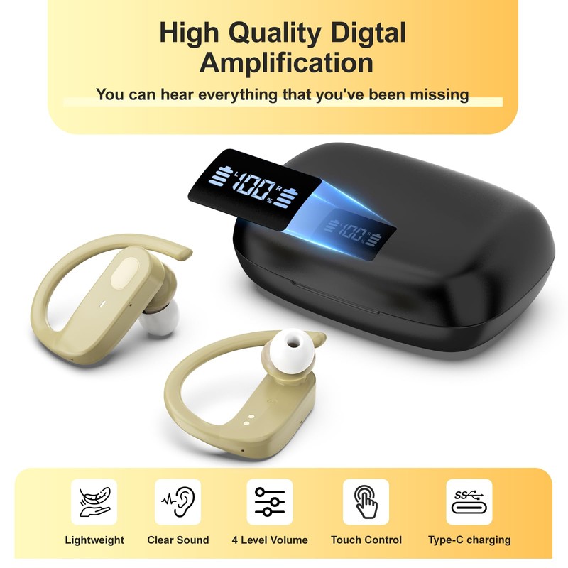 - POWERFUL RECHARGEABLE CASE: Comes with a convenient storage case that not only protects your hearing amplifiers but also recharges them 4 to 5 times on a single case charge Ideal for travelers and those on the go, ensuring your devices are always powered up when you need them. Also this powerful charging case supports Type-C fast charging, ensuring rapid recharge times.