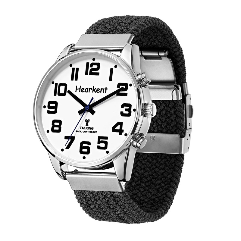Hearkent British English Talking Watch with Large Numbers Self-Setting for Visually impaired, Blind or Elder People, Men Size (Nylon Black)