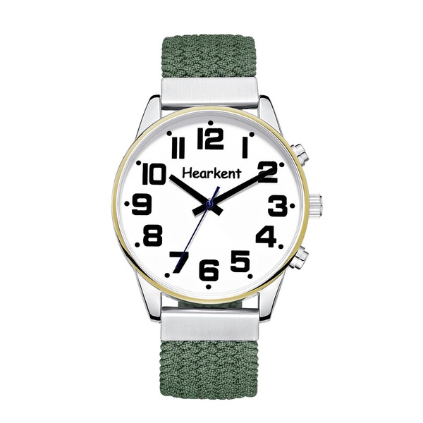 Hearkent Men's Talking Watch with French Voice Large Numbers for Visually Impaired, Blind or Elderly, Nylon Green, Classic