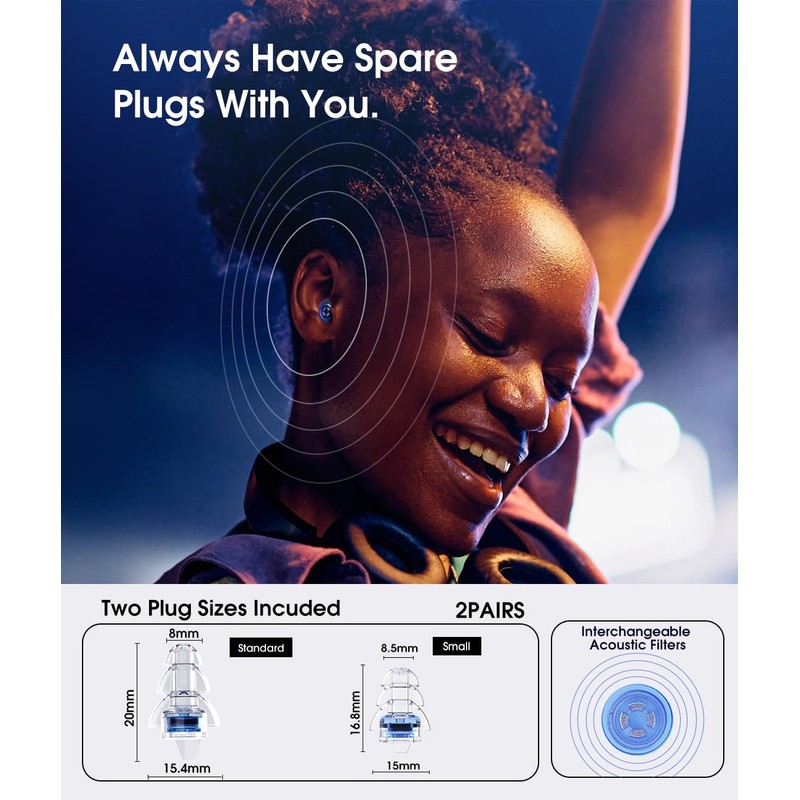 - Discrete & Portable: Low-profile design with translucent or frosted shells for a discreet look on stage, at concerts, clubs, or the office. Includes a soft silicone detachable cord and comes in a long-lasting aluminum case with a carabiner, making it easy to clip to belts or bags and keep your plugs secure
