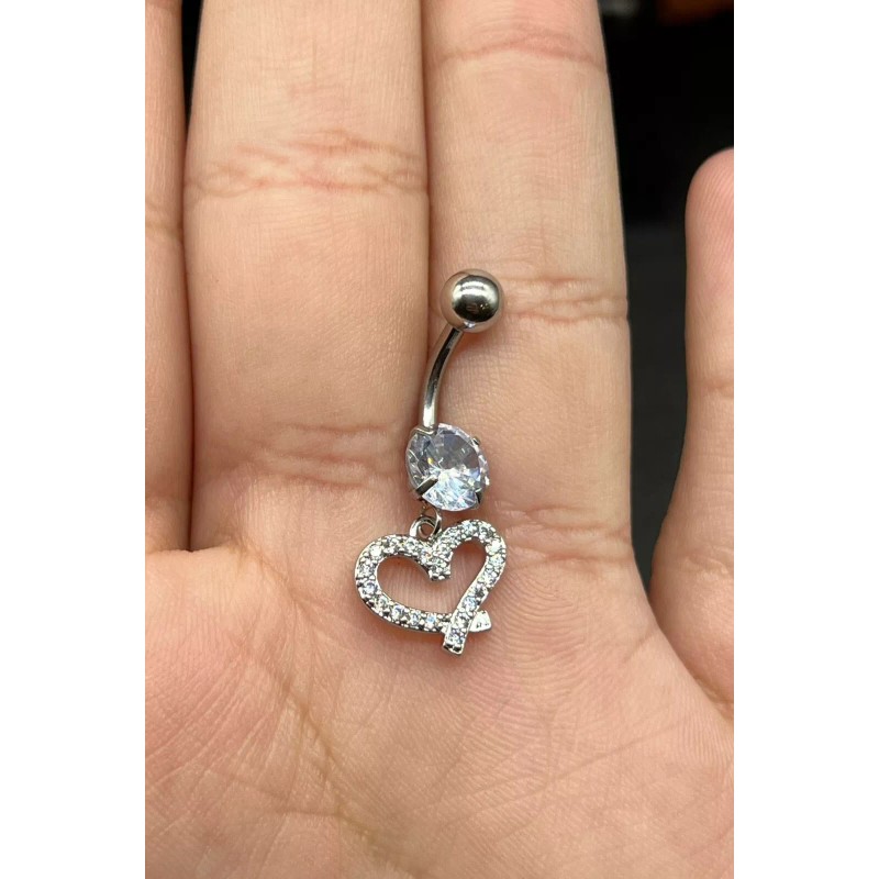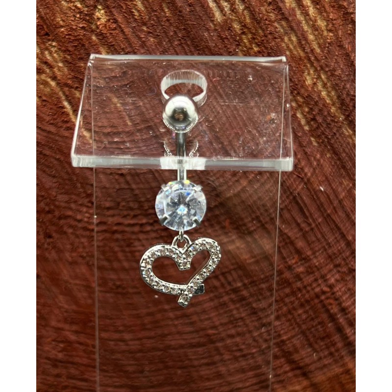 Heart 14 Gage Heart Shaped Lasso Belly Button Ring Stainless Steel Cubic Zirconia