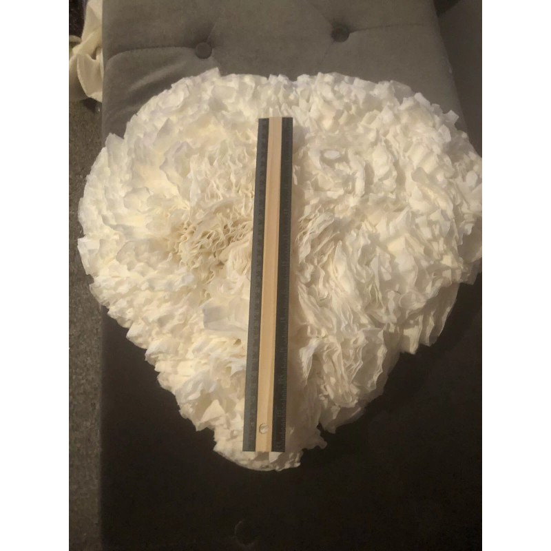 This is a beautiful hand crafted from a wire form and coffee filters heart shaped wreath. It measures approximately 15 inches in width and 15 inches in length.