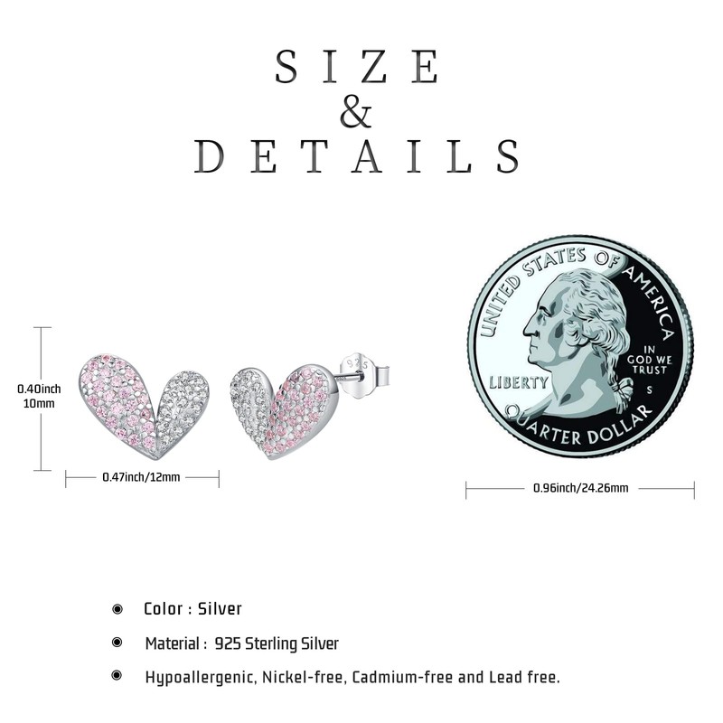 - ✦CLASSIC DESIGN✦: Dainty simple heart earrings studs, never go out of style. Decorated with silver and pink cubic zirconia, elegant with a sweet and special design, and they are a completely different style than your stud earrings. The unique design can highlight your appearance, and grasp everyone's eyes in the crowd