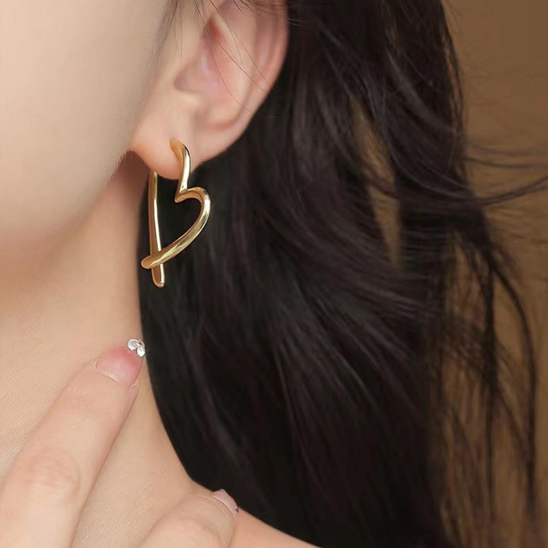 - 3. Heart hoop earrings are stud design, easy to wear and not easy to fall off.
