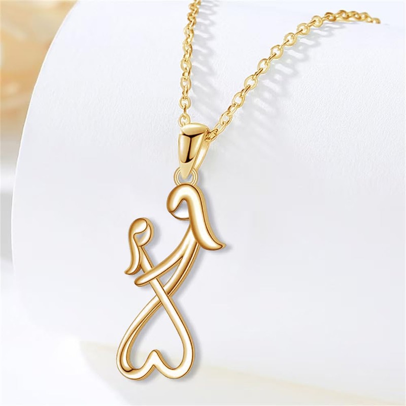 Heart Infinity Pendant Necklace for Women Dainty Mother' Hug Necklaces Adjustable Link Charm Chain Comfortable Cute Jewelry for Anniversary Holiday Party (Gold-Toned)
