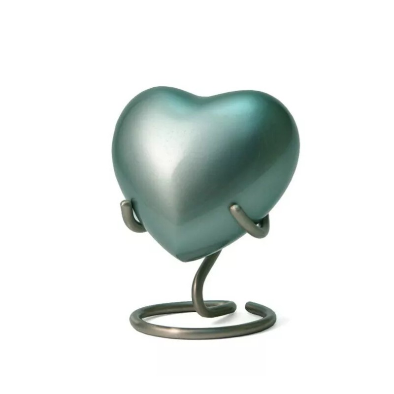 Heart Keepsake Brass Green Funeral Cremation Urn for Ashes, 3 Cubic Inches