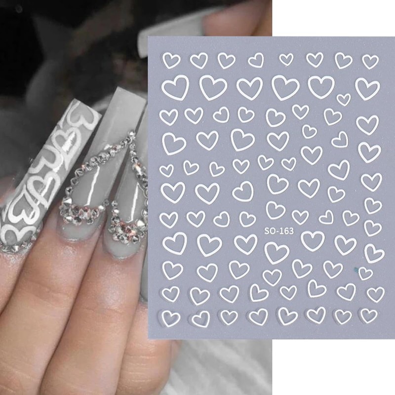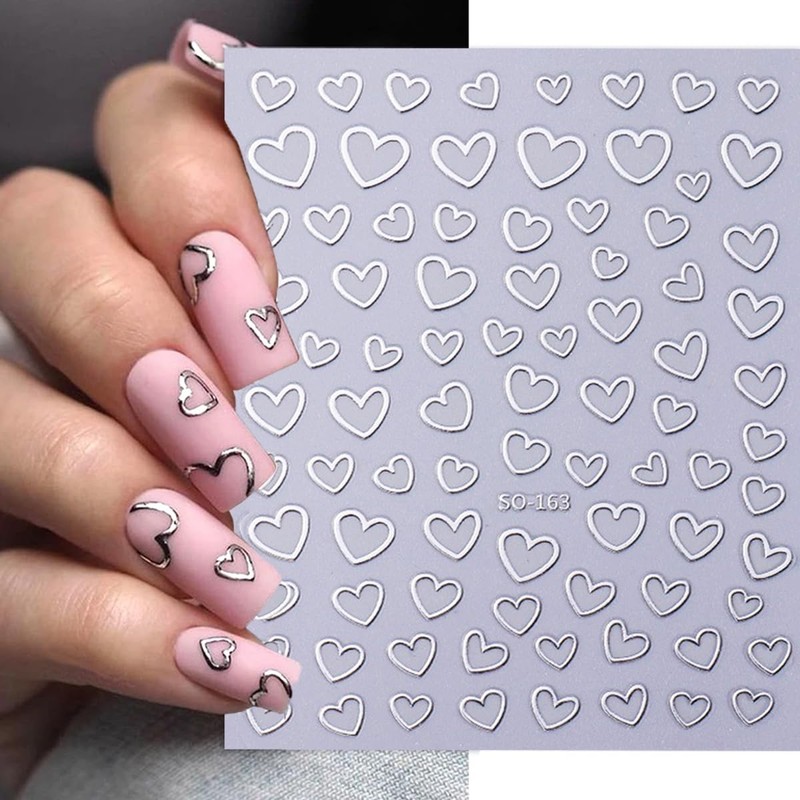 Heart Nail Art Stickers Valentine's Day Nail Decals 8PCS Empty Love Heart 3D Self-Adhesive Valentine Nail Art Decorations Supplies Silver White Gold Heart Stickers for Nails Manicure Nail Art Design