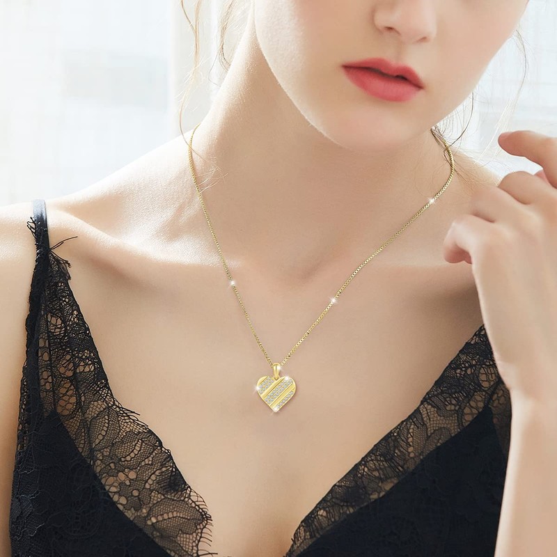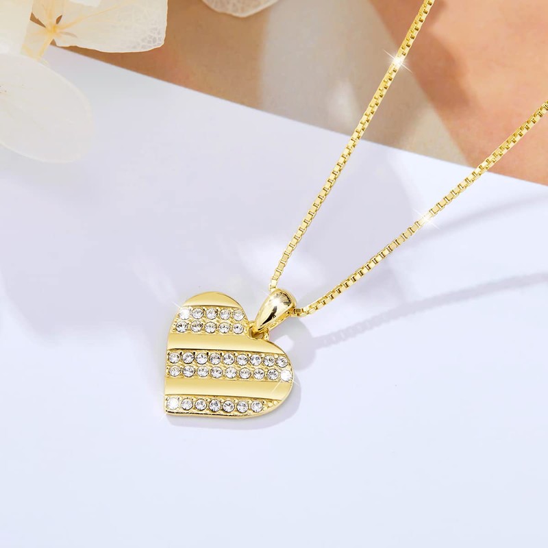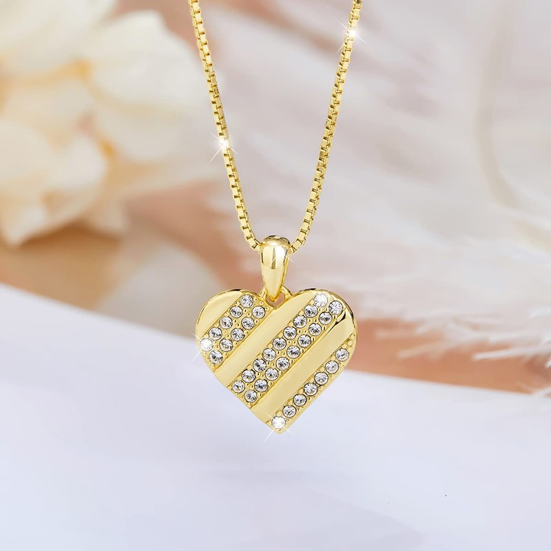 Heart Necklace Made of 925 Silver 18 Carat Gold Plated Shiny Crystals for Women in an Elegant Jewellery Box and Certificate of Authenticity