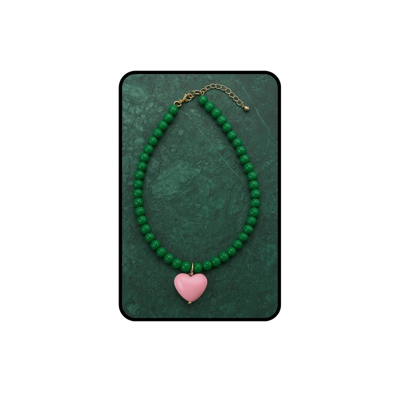 - [Heart Necklaces For Women]:This Heart Necklace for Women features a bold Y2K aesthetic with vibrant green beaded details and a glossy pink heart pendant. The choker shape brings a cute and youthful touch to your neckline, perfect for expressing individuality and charm. The color contrast between green and pink makes it a standout summer statement piece