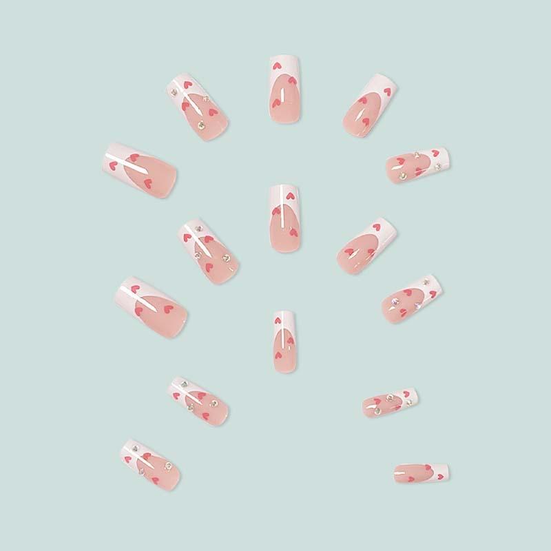 Heart Pattern Fake Nail Set, 24pcs/box French Style Square Press on Nails & T...