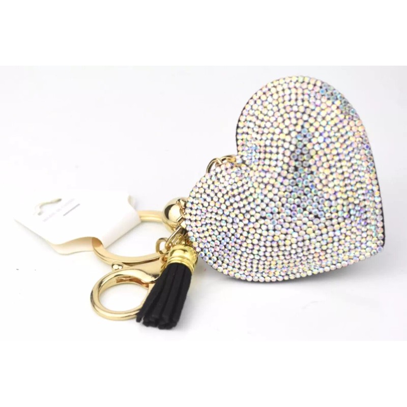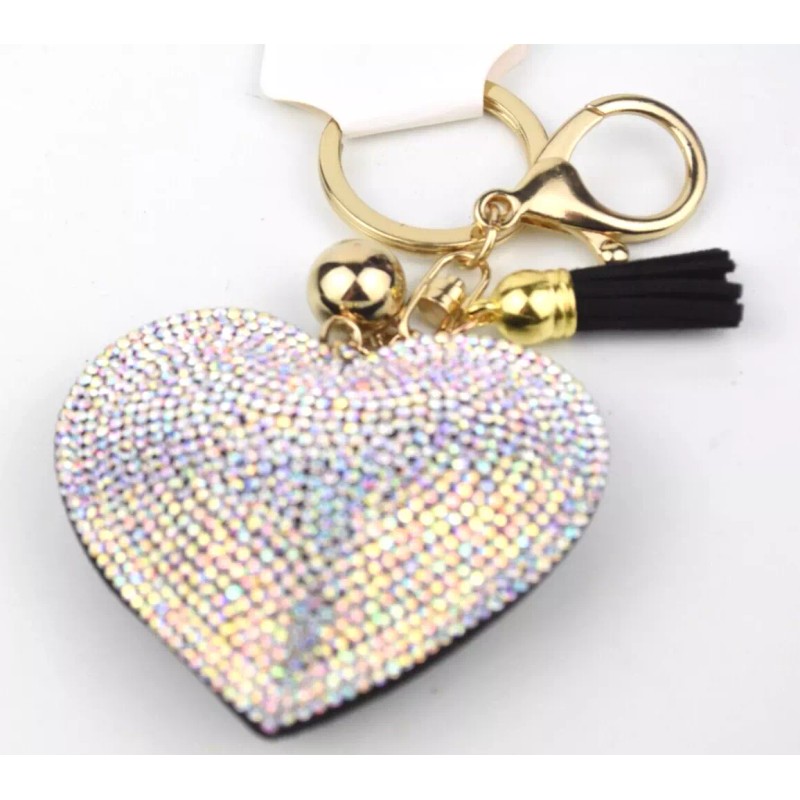 Heart Rhinestone Keychain with Black Tassel Hooks to Handbag Llavero Corazon NEW