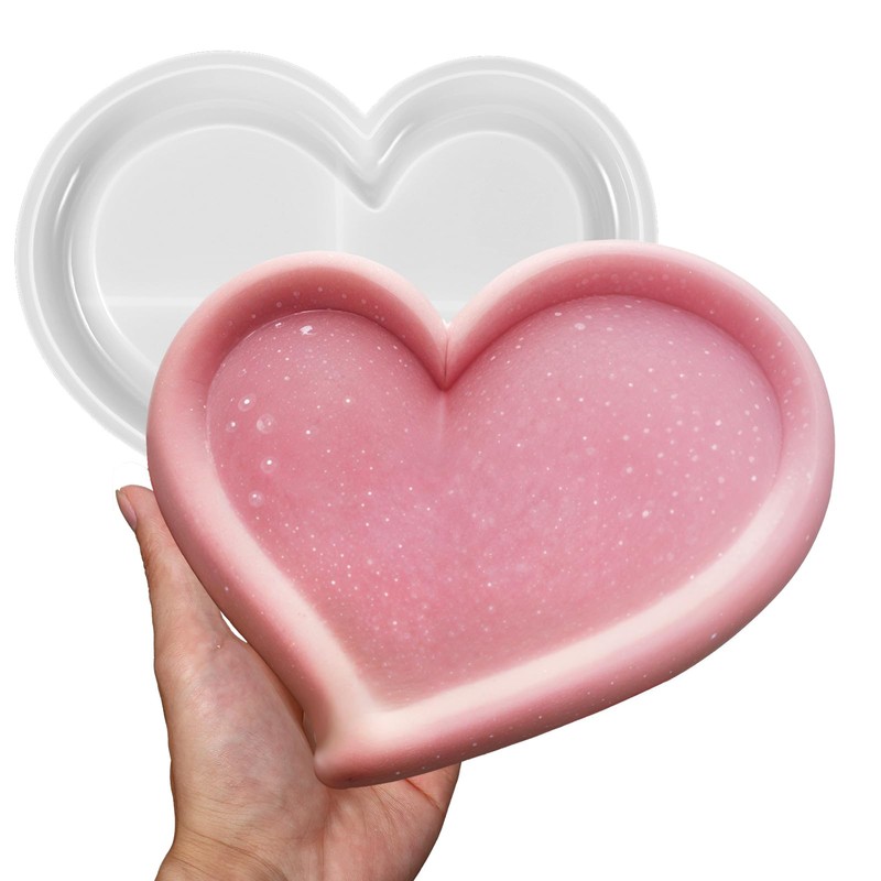 Heart Shape Resin Tray Mold, Multi-Purpose Concrete Molds, Candle Holder Storage Molds for Tray Container Making DIY Art Home Table Decoration