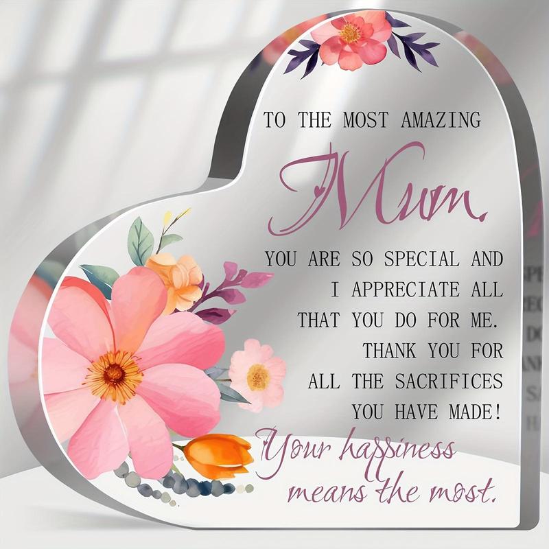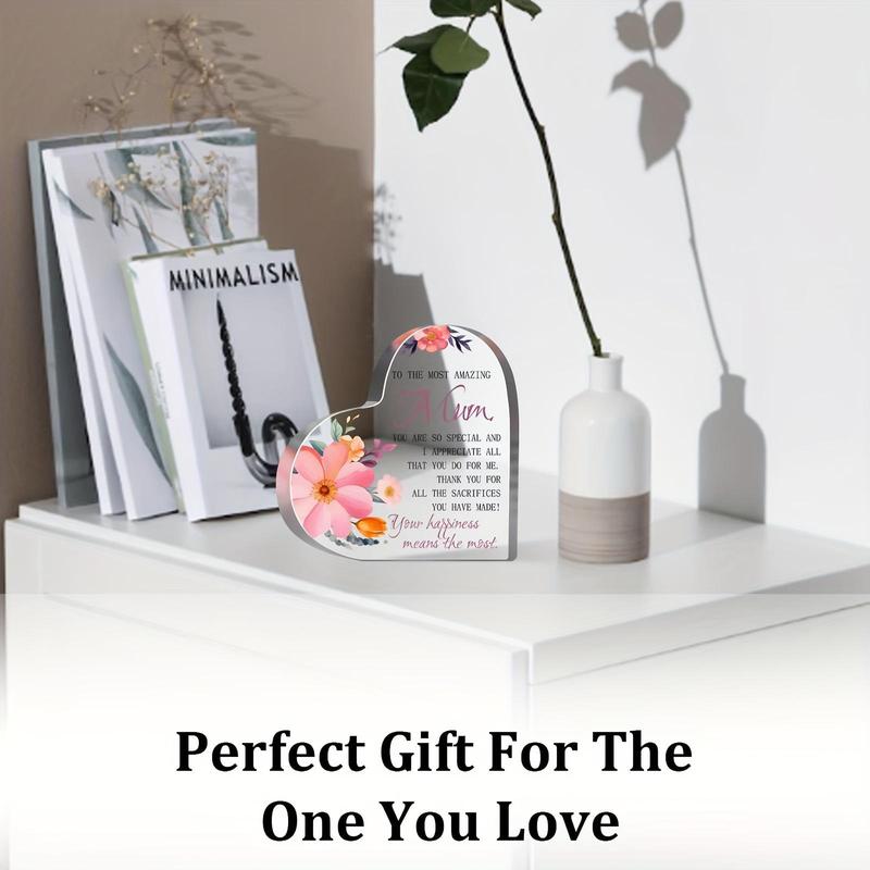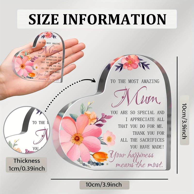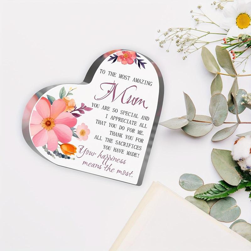 Heart Shaped Acrylic Plaque, Floral Pattern Desktop Plaque, Thank You Gift for Mother, Home Decor for Living Room Bedroom Dining Room
