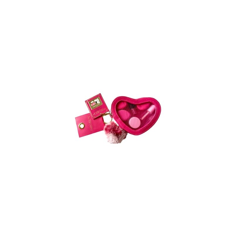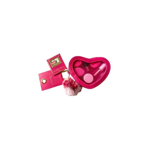 Heart-Shaped Cosmetic Bag Set with Fur Charm, Pink Beauty Organizer with Gold Accents