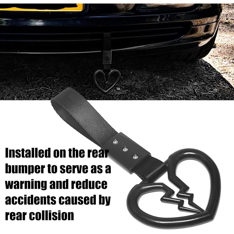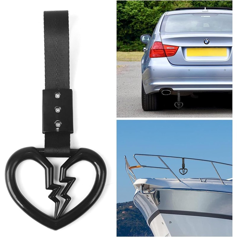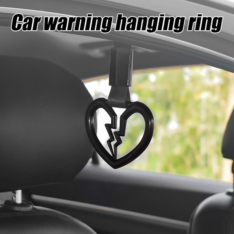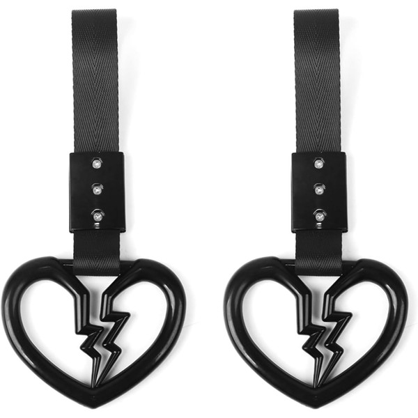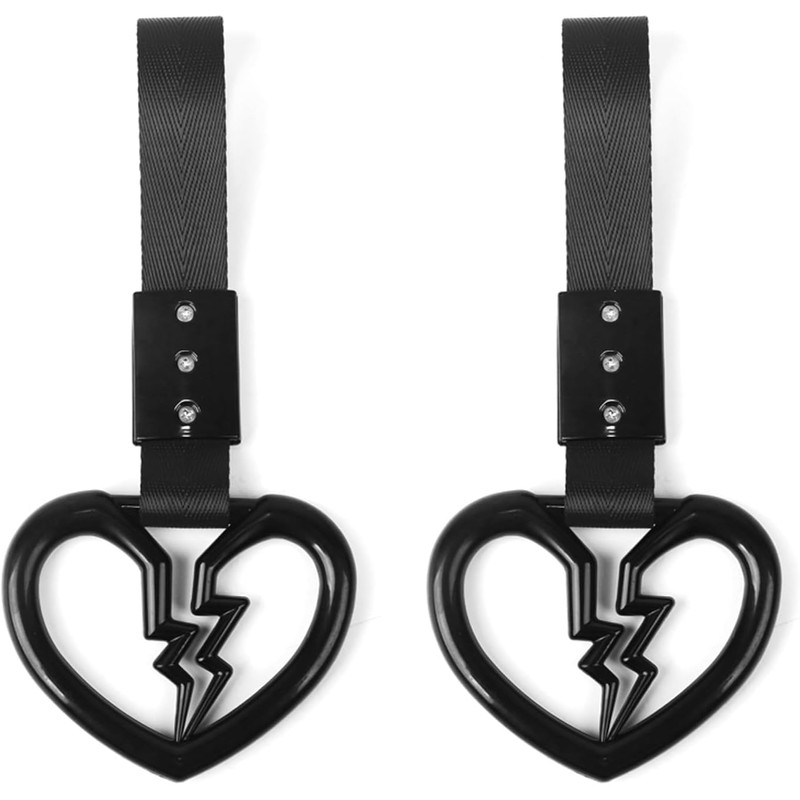 Heart-Shaped Door Hooks with Lightning Design, Heart Shaped Car Handle Straps Hang Ring Rear Bumper Warning Ring Decorative Subway Train Bus Handle Hand Strap Drift for Car (Black)