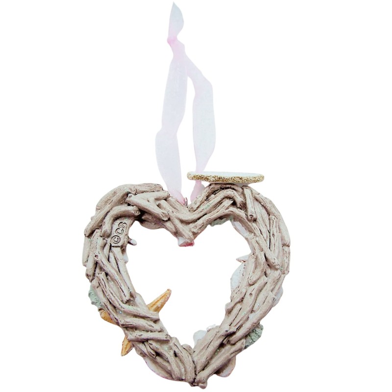 - CHRISTMAS ORNAMENT Featuring a Heart Shaped Colorful Seashell and Driftwood Wreath