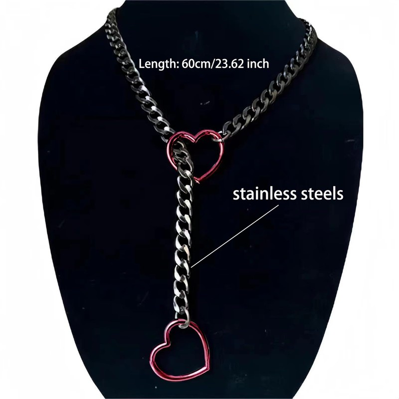 Heart Slip Chain Necklace Submissive Collar Chokers for Women Cuban Long Chain Affection Link Necklace (Red)