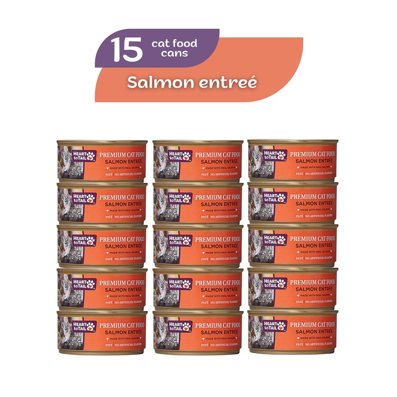 HEART TO TAIL CAT Food 5.5 OZ (15 Pack) Salmon Entree + Gift Squeeze Up (2 ud)