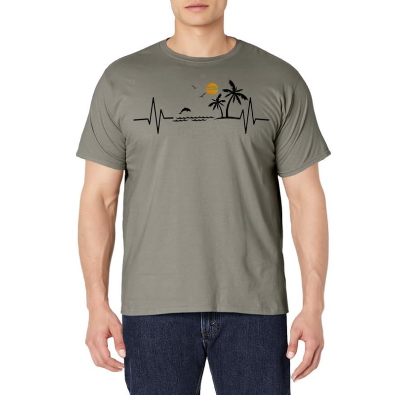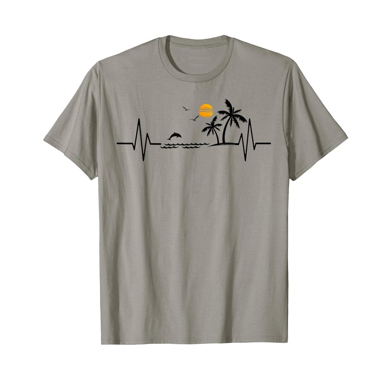 Heartbeat with Tropical Palm Trees Beach Island and Dolphin T-Shirt
