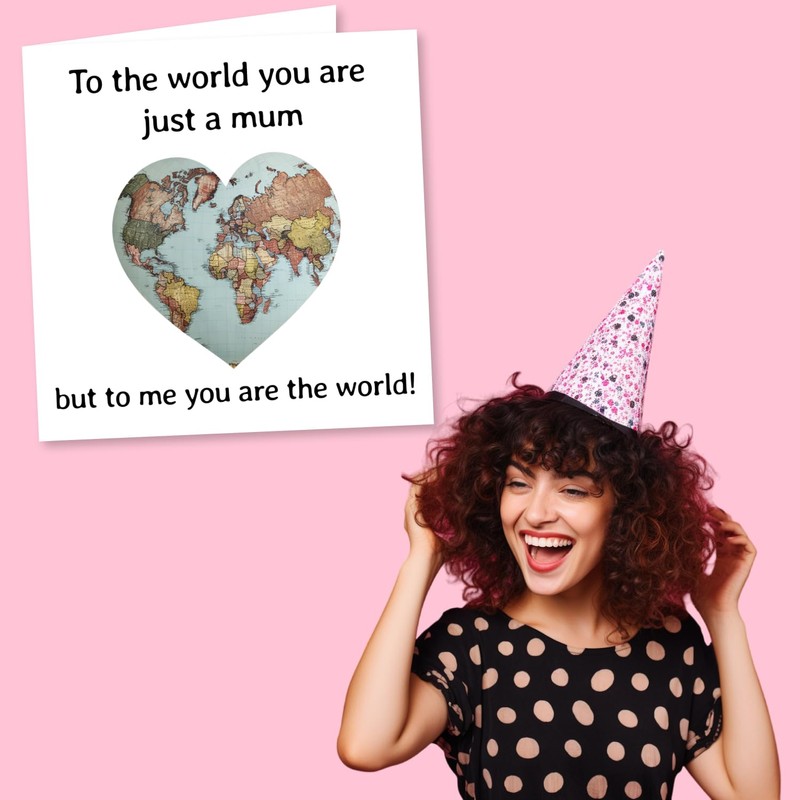 Heartfelt Mum Birthday Card or Mother's Day Card - To The World You Are Just A Mum But To Me You Are The World - Map Design - Birthday Card For A Wonderful Mom