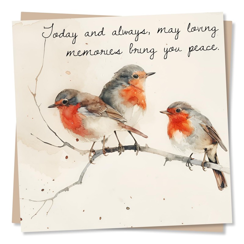 Heartfelt Robin Condolences Card - May Loving Memories Bring You Peace - Three Birds, Watercolour Design - Sympathy Card For Loss Of A Loved One
