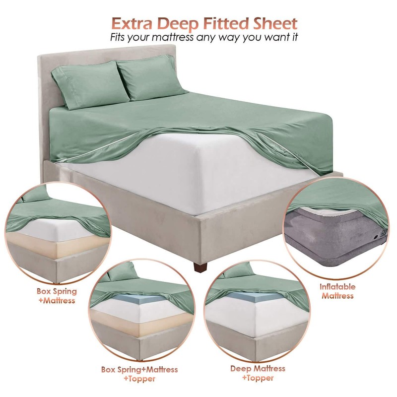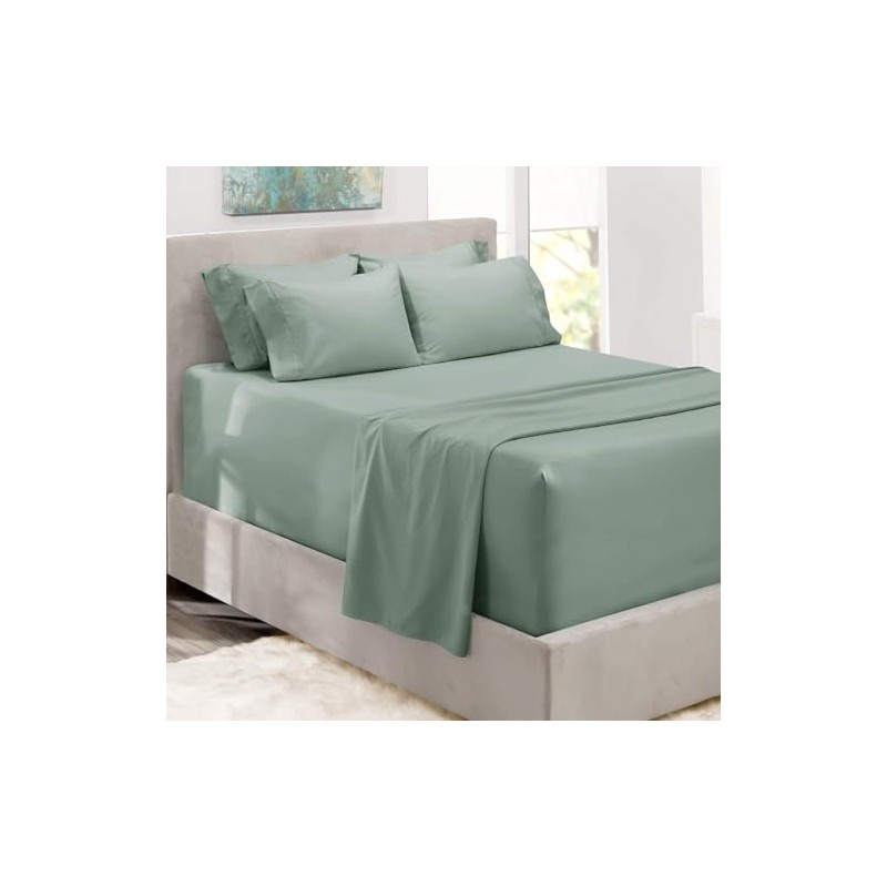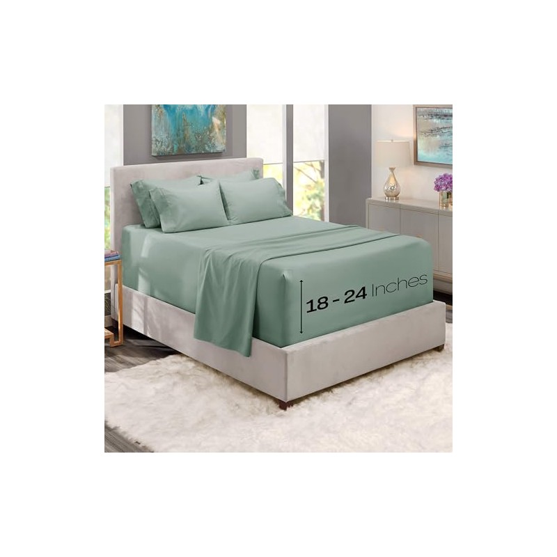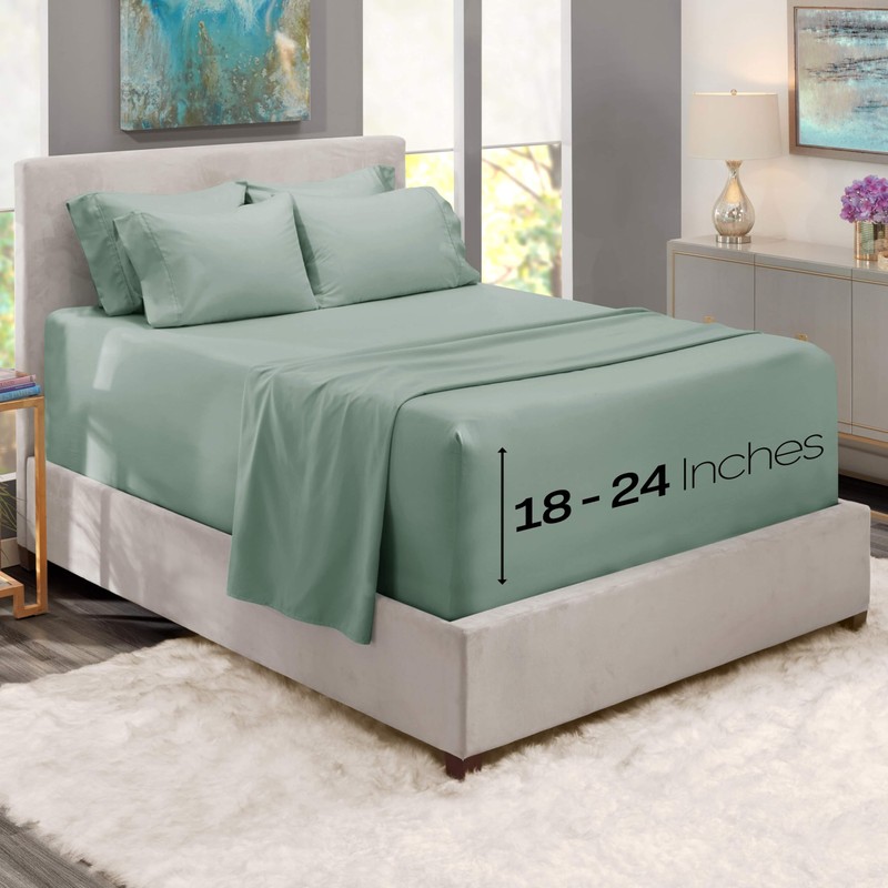 Hearth & Harbor Bed Sheets, Luxury Soft 6 Piece Bed Sheet Set Extra Deep Pocket Fitted Sheets Fits Mattress up to 21", Double Brushed Bedding Sheets & Pillowcases, Queen, Ice Green