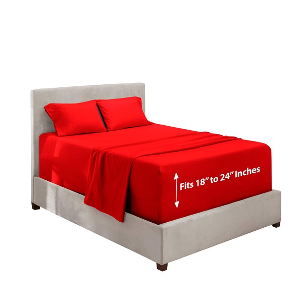 Hearth & Harbor Extra Deep Pocket Queen Sheets - 4 Piece Hotel Luxury Queen Sheet Set Fits Up to 24" Mattress - Ultra Soft Luxury Queen Bed Sheet Set - Soft & Breathable, Queen, Cherry Red