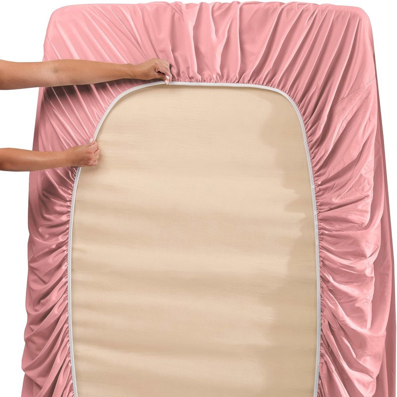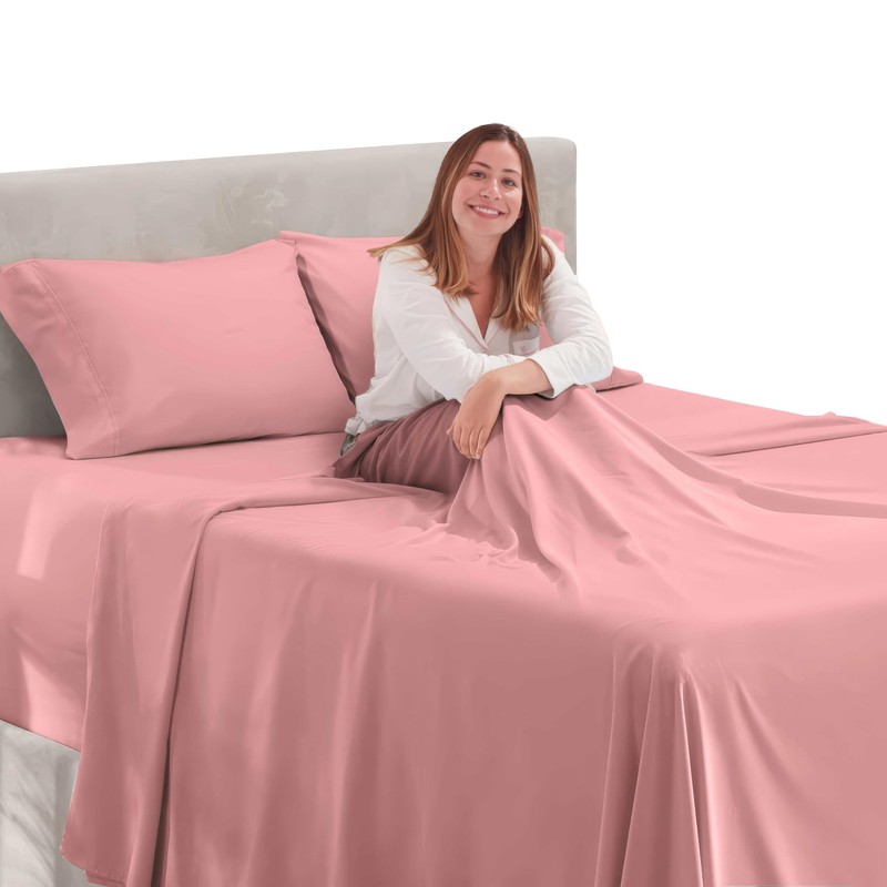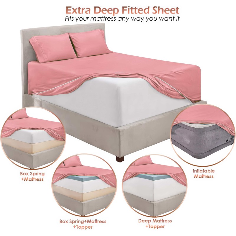 Hearth & Harbor Extra Deep Pocket Queen Size Sheets - 4 Piece Hotel Luxury Queen Size Sheet Set Fits Up to 24" Mattress - Ultra Soft Luxury Bed Sheet Set - Queen, Pink Clay