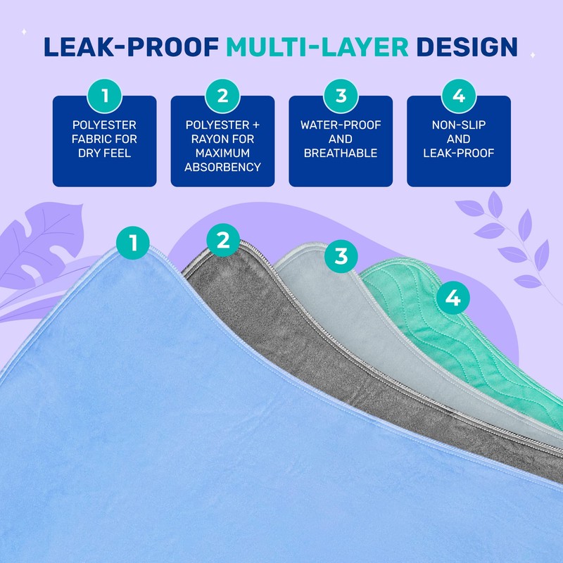 - Revolutionary Leakproof Bed Pads: Hearth & Harbor reusable underpads are a game-changer for bedwetting and incontinence protection. With its innovative design that wicks fluid to the edges of the pad, it provides 100% leakproof protection giving a restful and comfortable sleep experience.