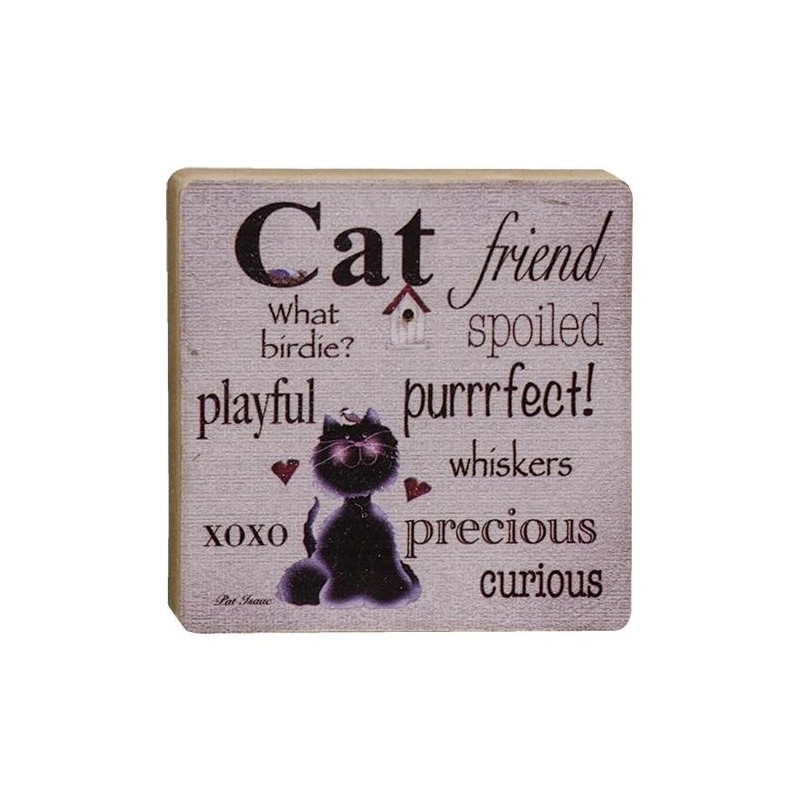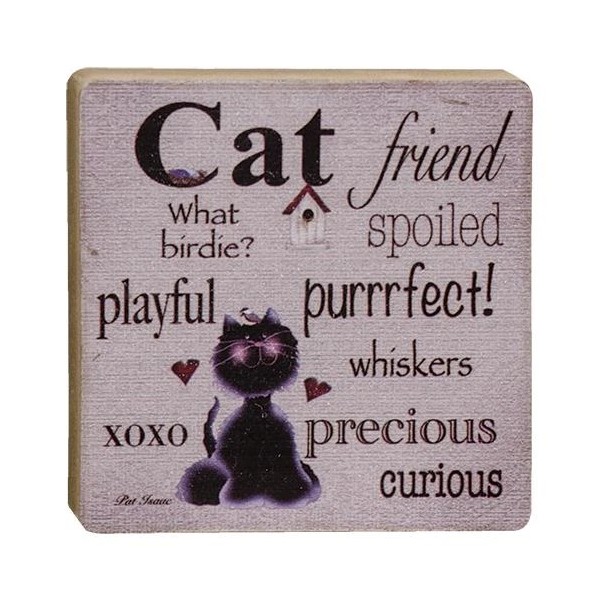 Hearthside Cat Friend Wood Block Sign Distressed Country Prim NWT 4 x 4 Cat Lover Gift