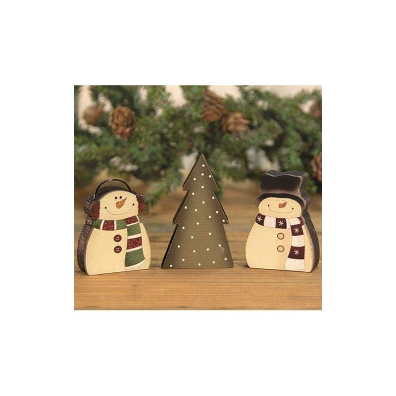 Hearthside Snowmen & Christmas Tree Wood Blocks Set of 3 Country Christmas Prim Winter Decor Distressed