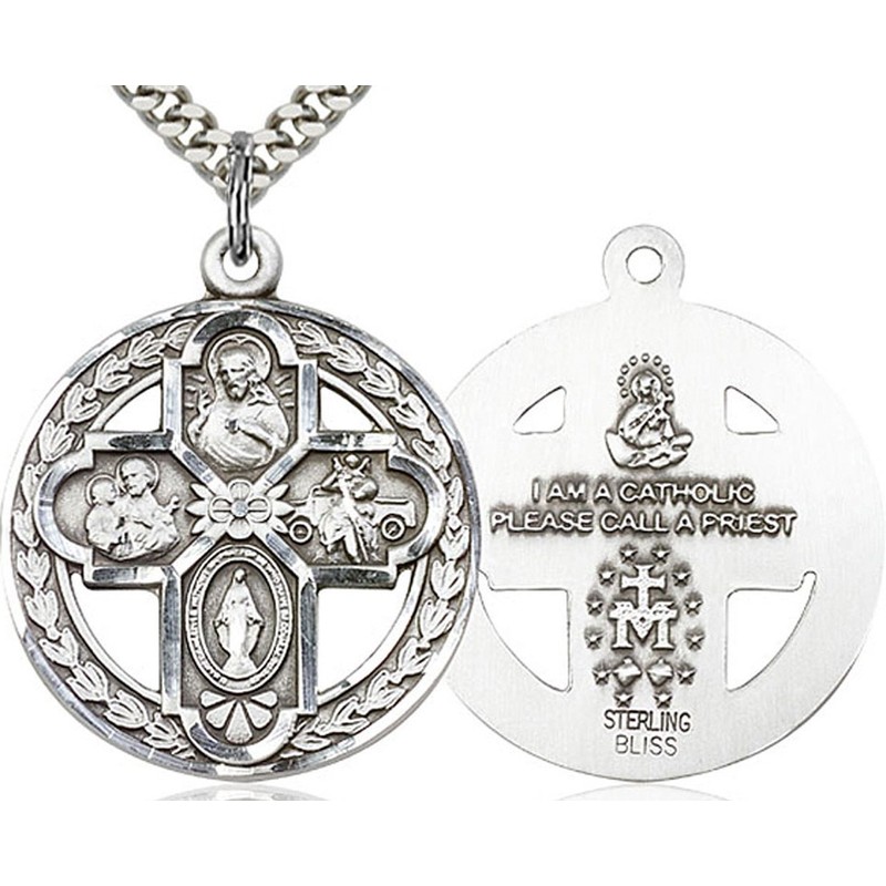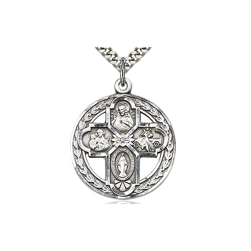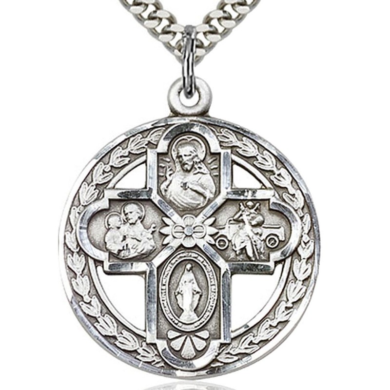 Heartland Store Men's Sterling Silver Circular 4 Way Cross Pendant + 24 Inch Endless Rhodium Plated Chain| USA Made